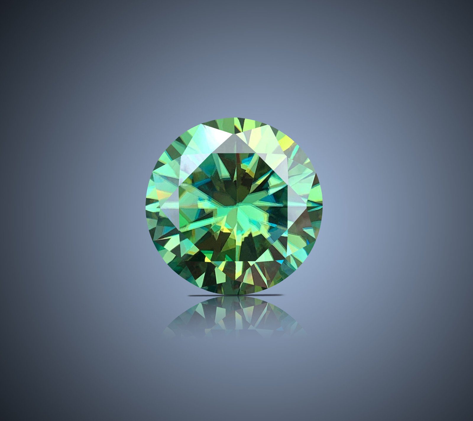 This stunning 42-carat green Moissanite stone is a true marvel of luxury and sophistication. Expertly crafted to showcase its vibrant green hue, this magnificent gemstone dazzles with its exceptional brilliance and fire. Its impressive size and captivating color make it a perfect centrepiece for high-end jewelry, exuding elegance and refinement. Whether used to make a statement or add a touch of glamour, this green Moissanite is sure to impress.